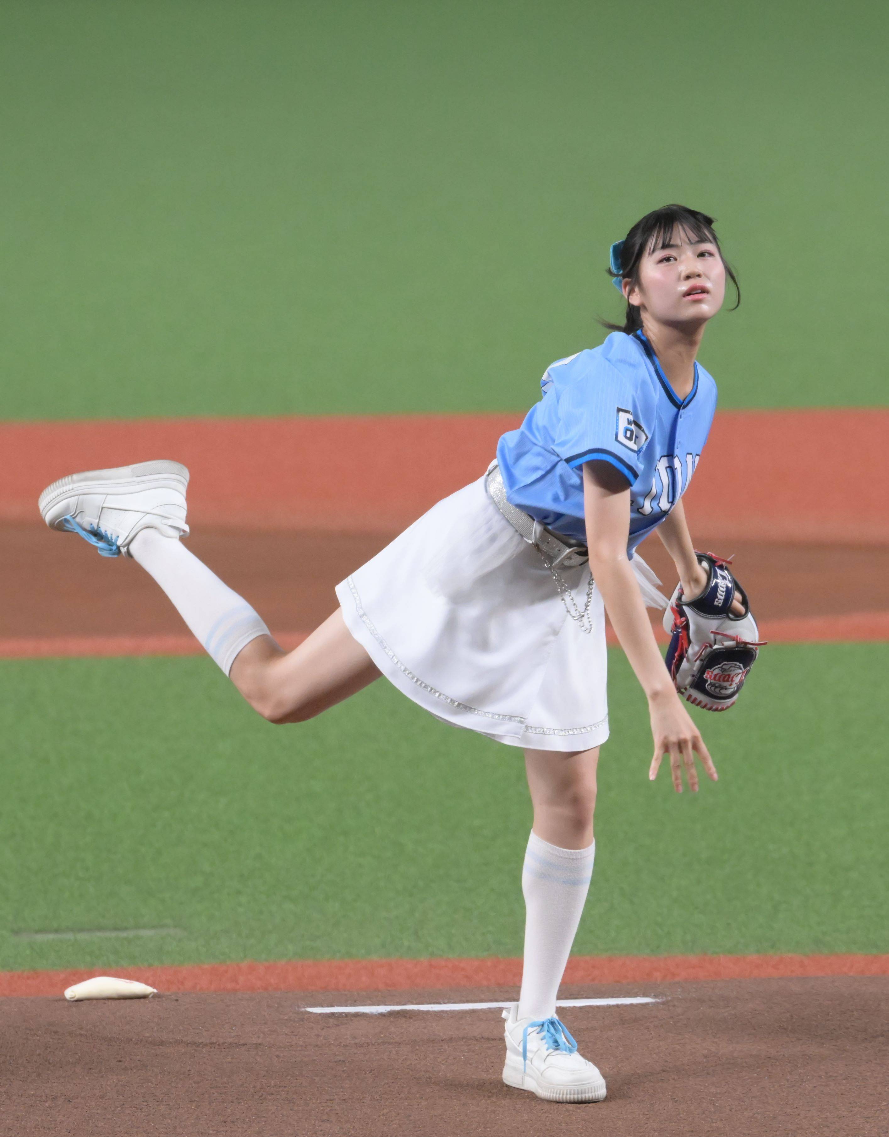 ミニスカ姿で始球式に登場した15歳女性アイドルにSNSでは多くの反響が寄せられている。