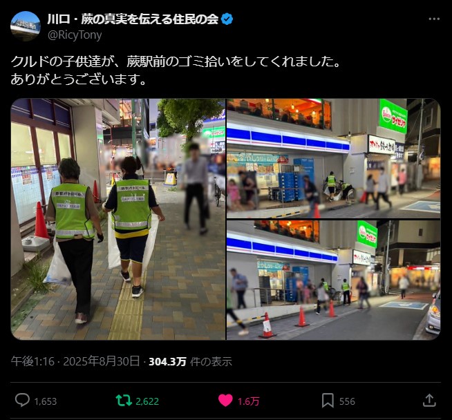 【感動】クルド人、日本の皆様のために地域清掃に勤しむ (※画像あり) Twitter Facebook はてブ LINE コピー 2025.09.02 スポンサーリンク 1:それでも動く名無し:2025/08/31(日) 23:29:19.96 ID:sVD7G1oU0 3:それでも動く名無し:2025/08/31(日) 23:33:18.27 ID:9EjwdL640 自分たちの街だからな 当然よ 4:それでも動く名無し:2025/08/31(日) 23:33:55.41 ID:YMjIPzYb0 いい試みじゃん日本人様の為にしっかり継続しろよ 5:それでも動く名無し:2025/08/31(日) 23:34:06.47 ID:YVhmU8Px0 で? 続きを読む