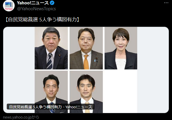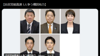 【悲報】自民党総裁選、茂木・林・高市・進次郎・コバホークの“地獄の5択”www