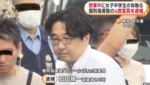 逮捕されたのは、東京 中央区の「やる気スイッチグループ」が運営する個別指導塾、「スクールIE」の元教室長、石田親一容疑者(45)です。