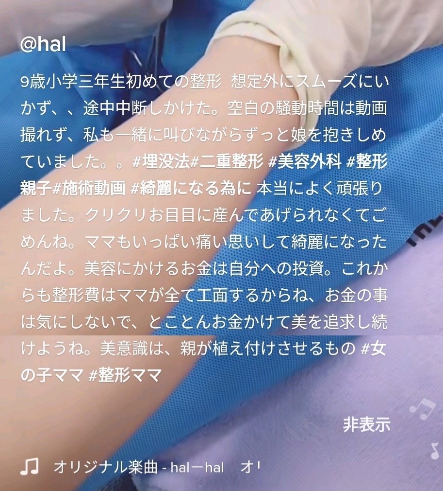 tiktokでまだ小学3年生(9歳)の子に二重整形させる動画見たけどちょっと可哀想だと思ってしまった。9歳の子の顔を変えてしまうのってまだ心もちゃんと成長してない中やるのは後々心の傷になりそう。泣きながら施術してるところとか胸が痛い...。https://t.co/20yl7tSZyu
