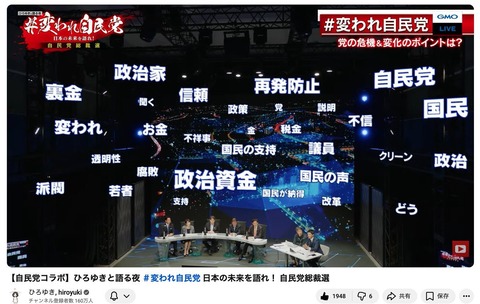 【画像】昨晩の「自民党&ひろゆきコラボ討論会」大切なワードが抜けてしまうwwwwww