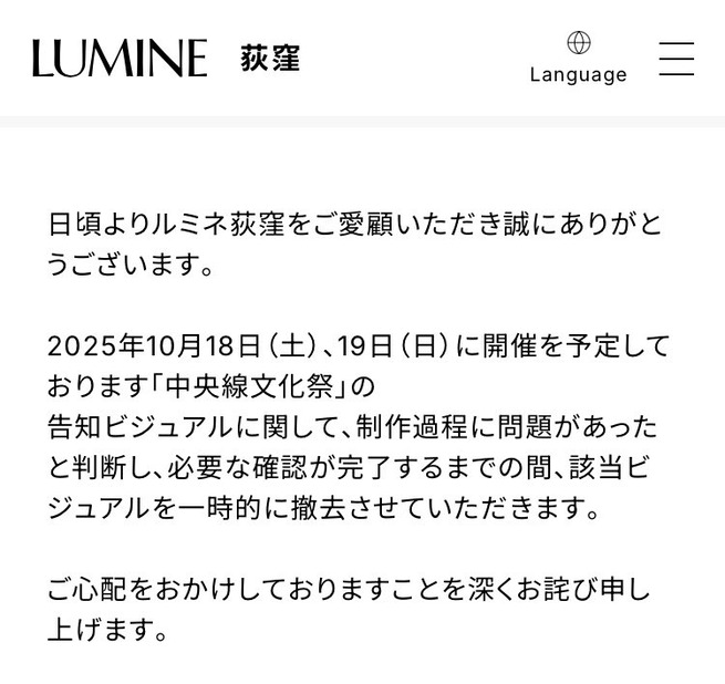【発表】ルミネ荻窪、江口寿史氏のイラスト「制作過程に問題」該当ビジュアル一時撤去https://t.co/T8Zg5KIzM5
