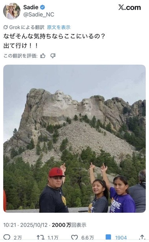 【画像】インディアン、アメリカ大統領像に中指を立てただけで叩かれる Twitter Facebook はてブ LINE コピー 2025.10.16 スポンサーリンク 1:それでも動く名無し:2025/10/15(水) 19:28:00.83 ID:1F+sY+Li0.net 3:それでも動く名無し:2025/10/15(水) 19:29:30.54 ID:FerE+QDMr.net いや元から住んでた人なんやけど 5:それでも動く名無し:2025/10/15(水) 19:30:10.03 ID:rpfw4a5b0.net アメリカ白人はヨーロッパに帰れって言う権利はありそう 続きを読む