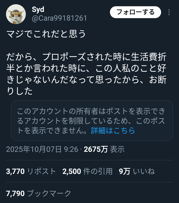 【悲報】女さん「生活費を折半にする男は論外」→9万いいね! Twitter Facebook はてブ LINE コピー 2025.10.16 スポンサーリンク 1 : 以下、?ちゃんねるからVIPがお送りします :2025/10/13(月) 13:22:18.992 ID:LB4scesHa.net育児も家事も生活費も全部男が負担する時代がようやく来たな2 : 以下、?ちゃんねるからVIPがお送りします :2025/10/13(月) 13:24:03.495 ID:BQGRkjGz0.net(´・ω・`)やっぱ女の人って結婚してニートになりたいだけなんじゃ…転載元スレッド:https://viper.2ch.sc/test/read.cgi/news4vip/1760329338/ 続きを読む