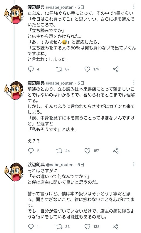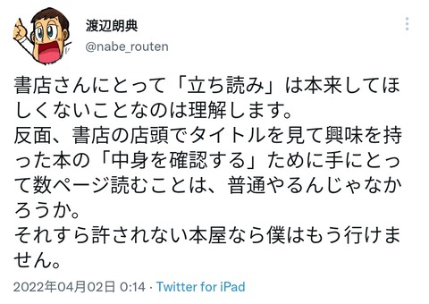 【悲報】本屋「立ち読みする人の80%は何も買わずに出ていくんですよね」→小学館編集長ブチギレ Twitter Facebook はてブ LINE コピー 2022.04.08 スポンサーリンク 1:風吹けば名無し:2022/04/07(木) 17:24:50.33 ID:QI8PDj4c0.net 2:風吹けば名無し:2022/04/07(木) 17:25:00.70 ID:QI8PDj4c0.net ええんか 続きを読む