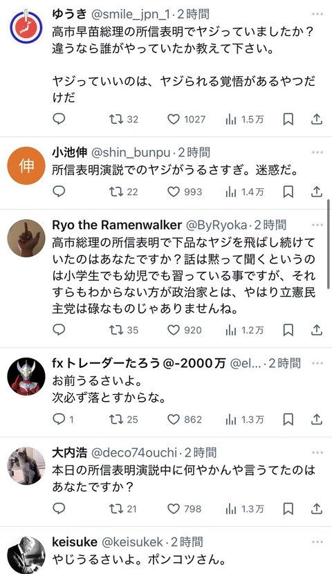 【悲報】高市応援団、ヤジ飛ばした議員のSNSに大挙して押しかけアンチコメントを投下しまくるwwwwwwww Twitter Facebook はてブ LINE コピー 2025.10.24 スポンサーリンク 1:それでも動く名無し:2025/10/24(金) 22:34:55.65 ID:MbxeeHpH0 X インスタ 怖すぎる 続きを読む