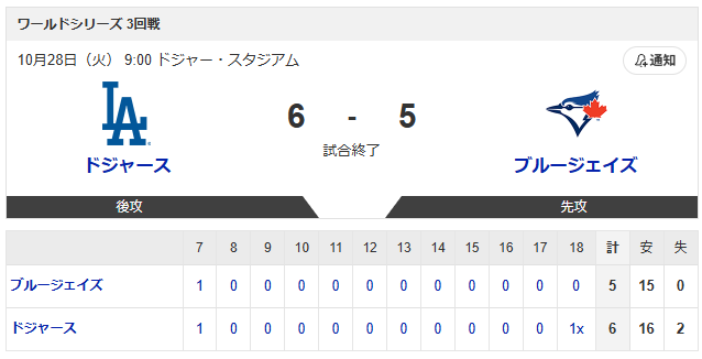 【大盛況】ドジャースがサヨナラホームランで勝利! 延長18回・試合時間6時間39分の死闘制すpic.twitter.com/p1o9MnwzXs
