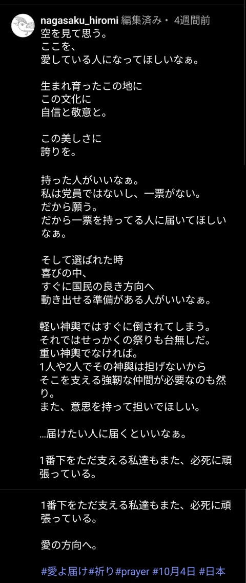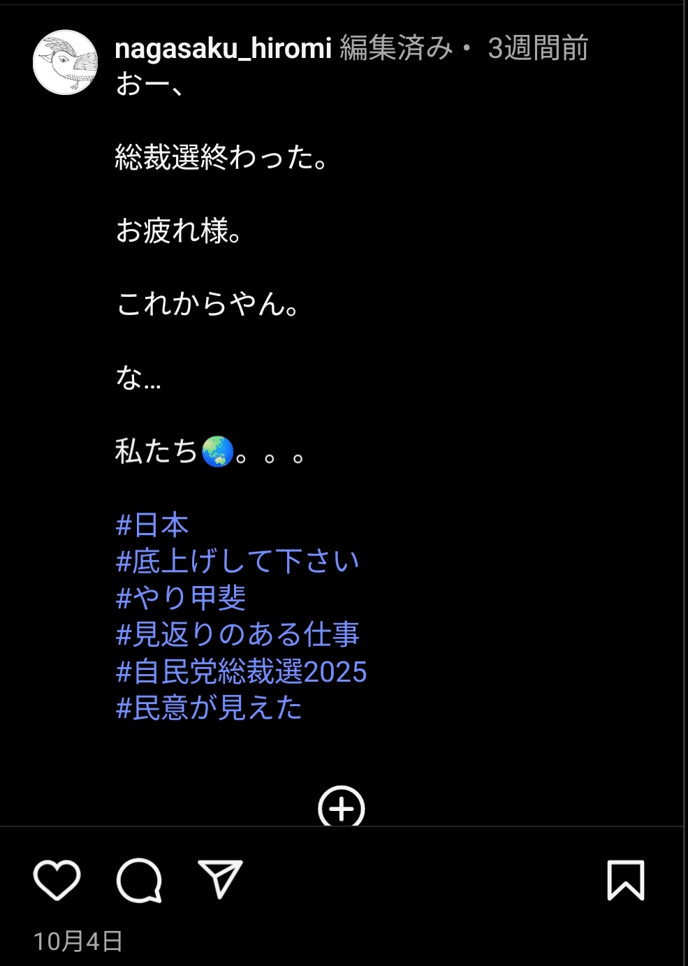 【悲報】女優の永作博美さん(55)、インスタで高市支持をほのめかす… Twitter Facebook はてブ LINE コピー 2025.10.30 スポンサーリンク 1:それでも動く名無し:2025/10/29(水) 20:41:09.80 ID:3FLiRIaEaNIKU https://www.instagram.com/nagasaku_hiromi 4:それでも動く名無し:2025/10/29(水) 20:42:43.48 ID:FwZxQK0g0NIKU こんなポエマーになってたのか 続きを読む