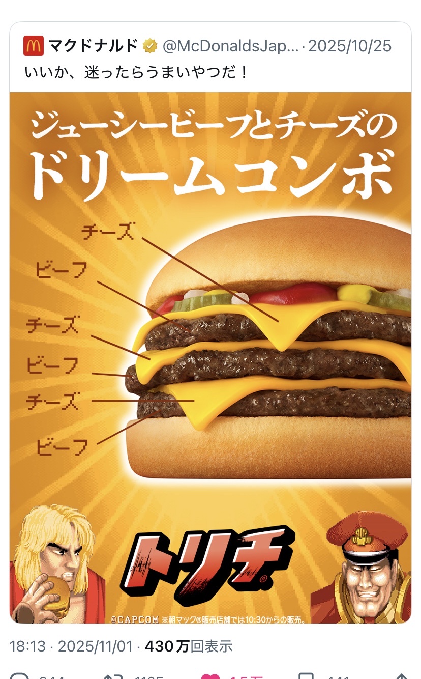 【画像】マクドのハンバーガーを買った人 激怒wwwwwwwwwww Twitter Facebook はてブ LINE コピー 2025.11.04 スポンサーリンク 1:それでも動く名無し:2025/11/03(月) 19:47:13.57 ID:dqX4YZ6a0.net 2:それでも動く名無し sage:2025/11/03(月) 19:48:13.77 ID:ZqkbE6qb0.net うまそうってこと? 3:それでも動く名無し sage:2025/11/03(月) 19:48:26.50 ID:NHslEzJk0.net 普通やんけ 4:それでも動く名無し:2025/11/03(月) 19:48:26.78 ID:ipLIX4xE0.net マックに何を期待しとんねん 続きを読む