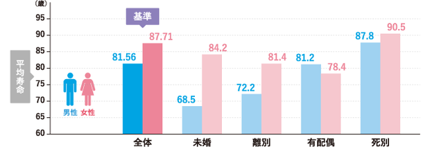 見方が違う有配偶者ってのは男性の方が長生きすることなのでそりゃ女性は男性の平均寿命以下になるよねって話