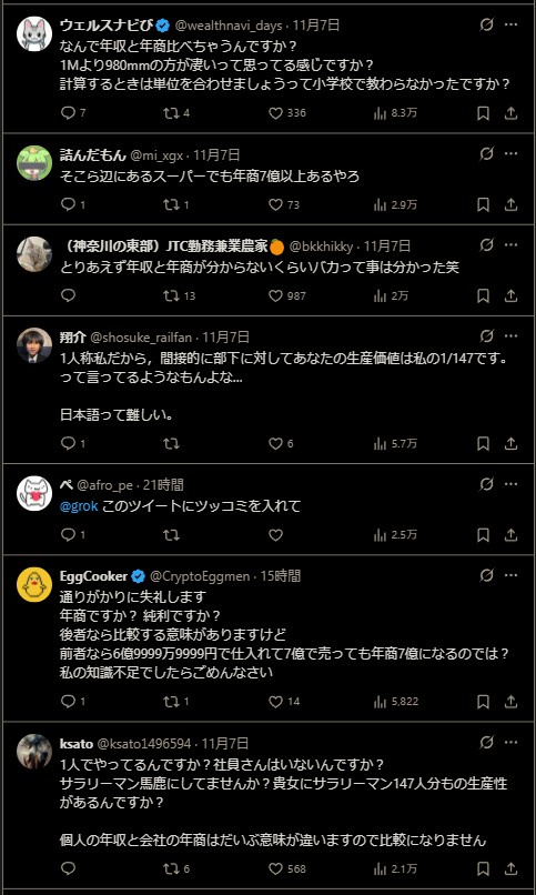 【炎上】美人すぎる女社長(22歳)「私は年商7億円だから一般人の147倍優秀だ」マウントオジサン「シュバババババ Twitter Facebook はてブ LINE コピー 2025.11.08 スポンサーリンク 1:(御前山) [ニダ]:2025/11/08(土) 09:57:24.59 ID: ● BE:977790669-2BP(2000) 画像 私は年商7億円だから一般人の147倍優秀だ— 竹之内更紗 (@sarasa_take) November 8, 2025 2:(邪馬台国) [US]:2025/11/08(土) 09:57:46.32 ID: BE:977790669-2BP(1000) >>1 竹之内更紗 続きを読む