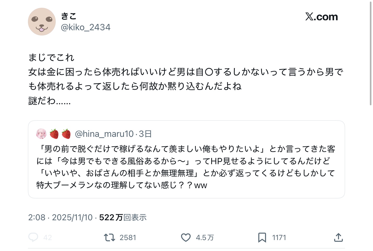 【悲報】🤓「女は体売ればいいから楽だよなw」女性「えっと…」完全論破&5万いいね Twitter Facebook はてブ LINE コピー 2025.11.13 スポンサーリンク 1:それでも動く名無し:2025/11/12(水) 12:56:25.07 ID:ORG0oiJe0 3:それでも動く名無し:2025/11/12(水) 12:57:51.16 ID:zBezb26S0 需要の多寡を考慮してないアホに呆れてるだけだろ 15:それでも動く名無し:2025/11/12(水) 13:00:18.91 ID:ORG0oiJe0 >>3 それももう論破されてる 20:それでも動く名無し:2025/11/12(水) 13:01:23.57 ID:O+x7ZaAb0 >>15 強すぎて草 雑魚なんG民じゃ絶対勝てないわ 続きを読む