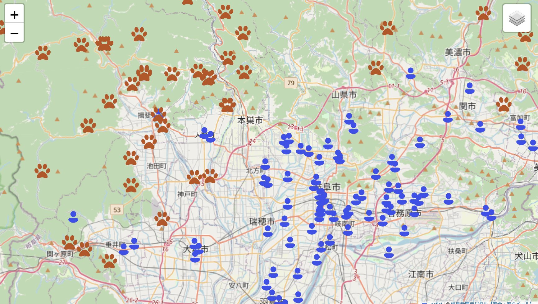 クマ発見ポイントと不審者発見ポイント