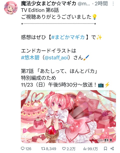【画像】声優の悠木碧さんがTV Editionまどマギ第6話に描いたエンドカードがあまりにも上手すぎて話題に Twitter Facebook はてブ LINE コピー 2025.11.17 スポンサーリンク 1:以下、?ちゃんねるからVIPがお送りします:2025/11/16(日) 20:06:08.882 ID:2tf919Qz0 巧すぎるだろ 2:以下、?ちゃんねるからVIPがお送りします:2025/11/16(日) 20:06:49.730 ID:S0Zta1380 ぶっちゃけ今はうまいやつ多すぎてこのレベルでも目立たない 3:以下、?ちゃんねるからVIPがお送りします:2025/11/16(日) 20:07:55.788 ID:r0pvvOOR0 これって給料出るの? 続きを読む