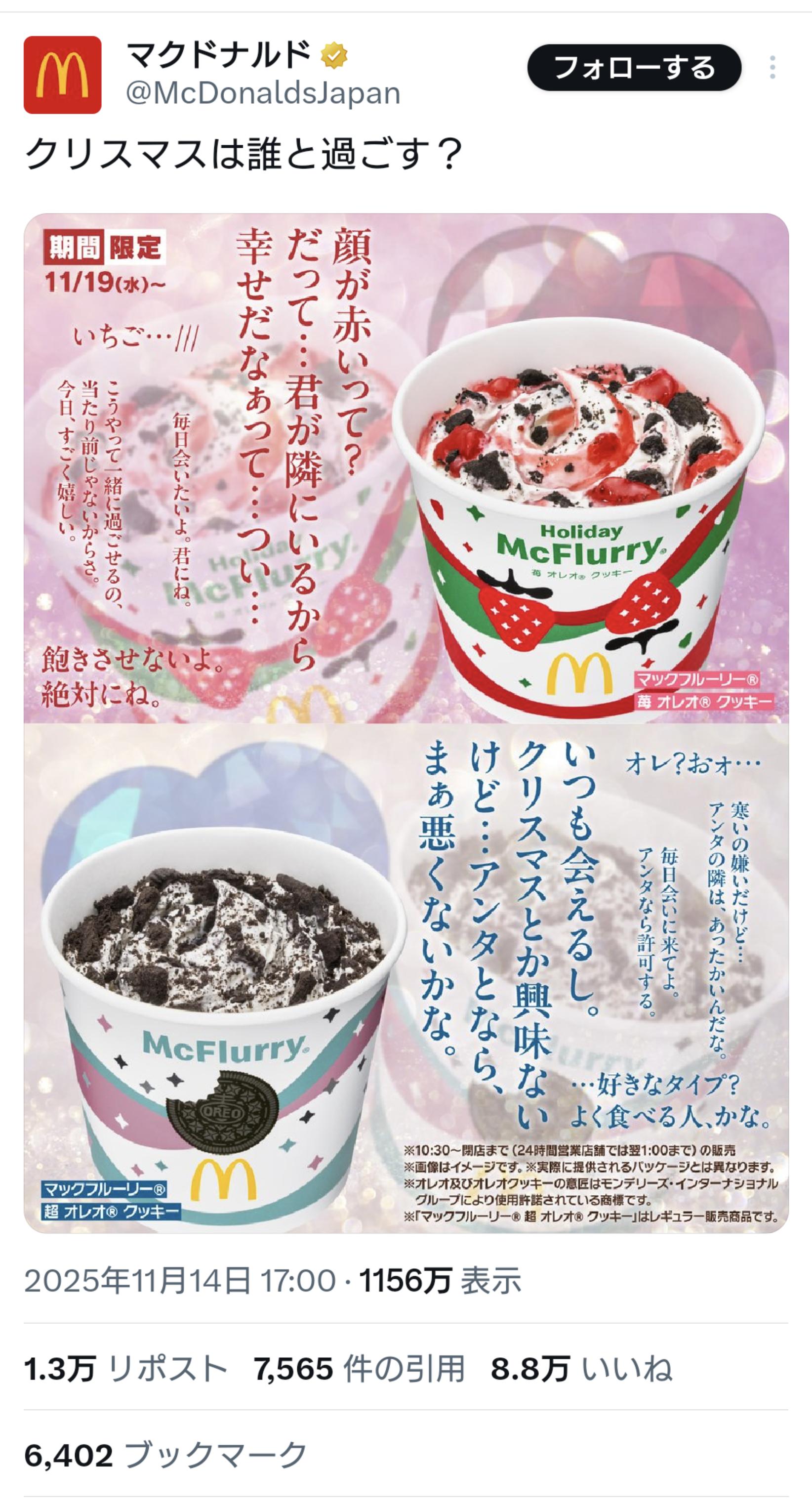 【悲報】マクドナルド、狂気の画像を投稿wwwwwwwww Twitter Facebook はてブ LINE コピー 2025.11.17 スポンサーリンク 1:それでも動く名無し:2025/11/16(日) 07:31:01.54 ID:VI4IHrAx0.net こわい 2:それでも動く名無し:2025/11/16(日) 07:31:35.44 ID:tXXRt+gGd.net いちご…/// じゃねぇよ 10:それでも動く名無し:2025/11/16(日) 07:37:50.18 ID:OeTlLMpe0.net >>2 ブリーチかな? 続きを読む
