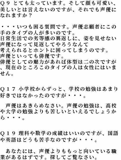 Q とても太っています。そして顔も可愛い、美しいとは言えないのですが、それでも声優になれますか?
