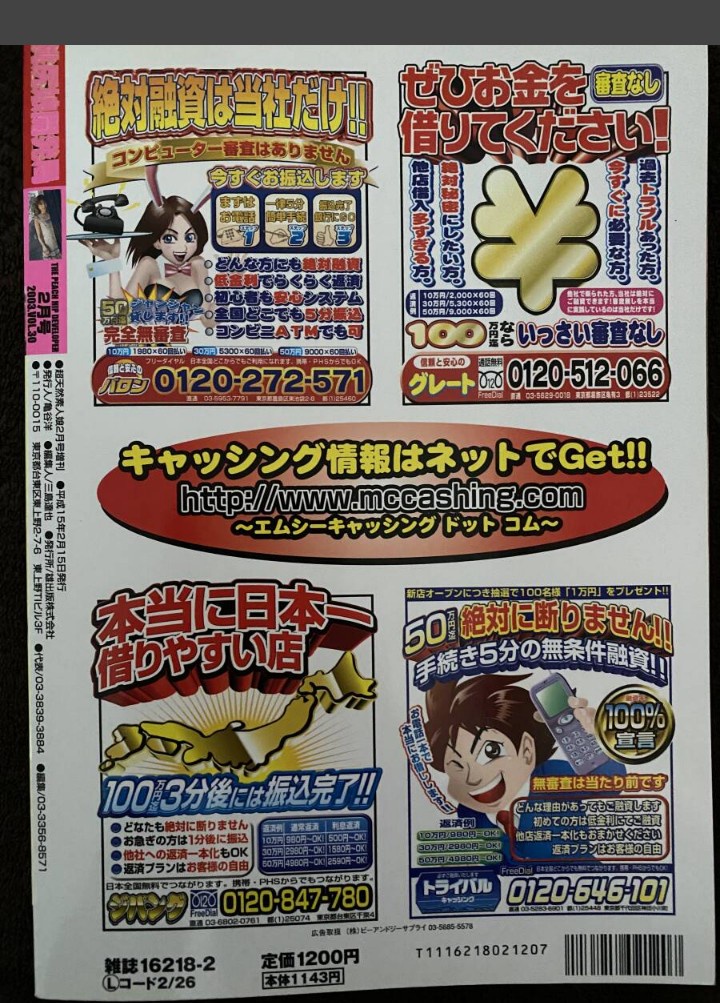 【画像】昔のエ□本、ヤミ金や悪質出会い系、詐欺サイトの広告だらけの無法地帯だった Twitter Facebook はてブ LINE コピー 2025.12.17 スポンサーリンク 1:それでも動く名無し:2025/12/17(水) 13:00:46.98 ID:9kOdoBHV0.net 今のネットと同じやね 2:それでも動く名無し:2025/12/17(水) 13:01:40.85 ID:8sywNi4v0.net 公衆ボックスをチラシで埋め尽くす 続きを読む