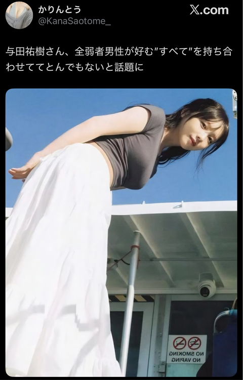 【画像】与田祐希さん、弱者男性が好む全てを持ち合わせてると話題にWWWWWWWWWWWWWWWWWWWWWWWWWWW Twitter Facebook はてブ LINE コピー 2025.12.21 スポンサーリンク 1:それでも動く名無し:2025/12/20(土) 22:50:45.67 ID:j7uxeHKa0.net 2:それでも動く名無し:2025/12/20(土) 22:51:04.10 ID:j7uxeHKa0.net https://x.com/kanasaotome_/status/2001854248779419908 続きを読む