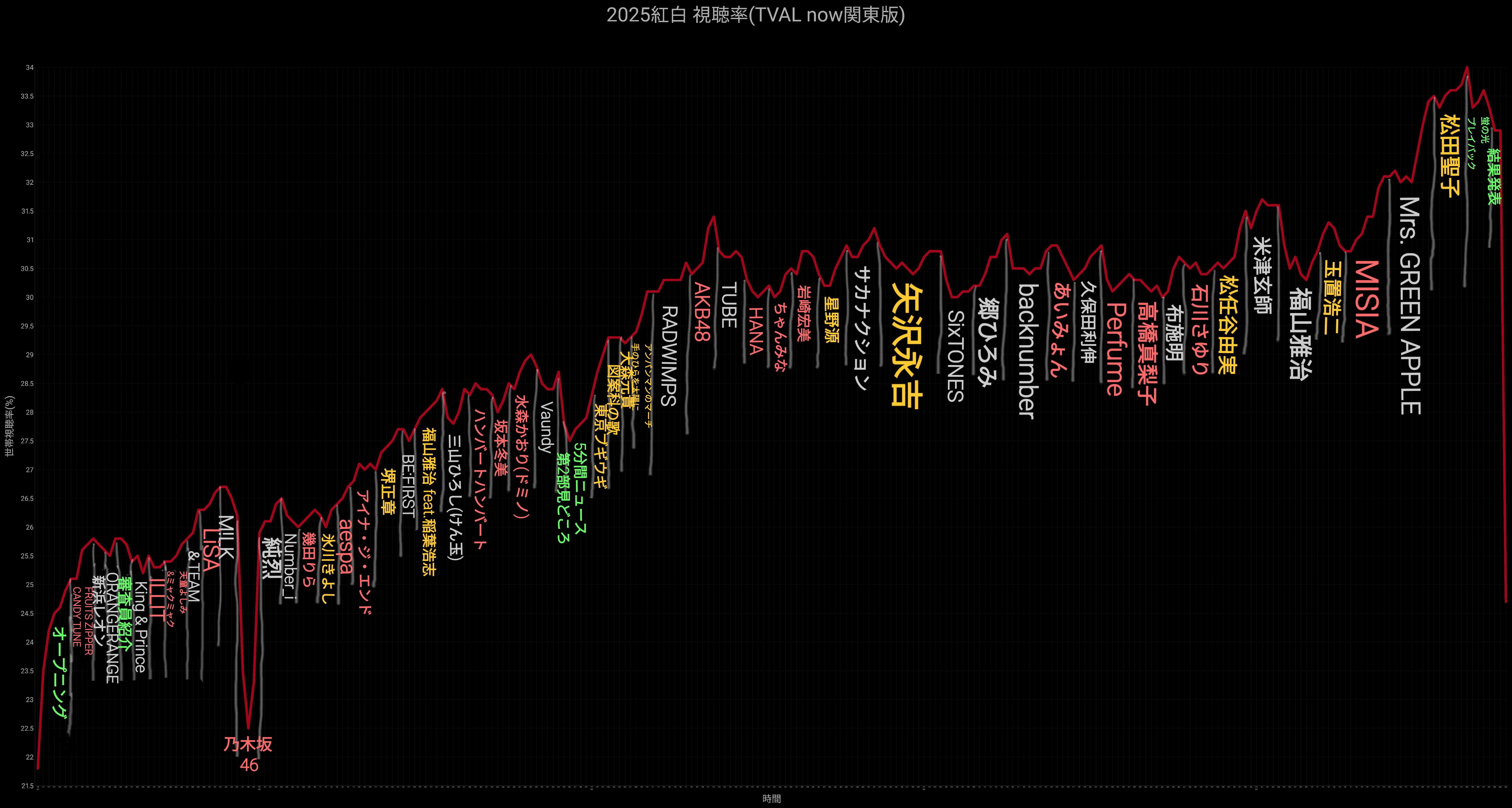 【画像】紅白の歌手別視聴率で恐慌が起きてるんだけどwwwwwwww