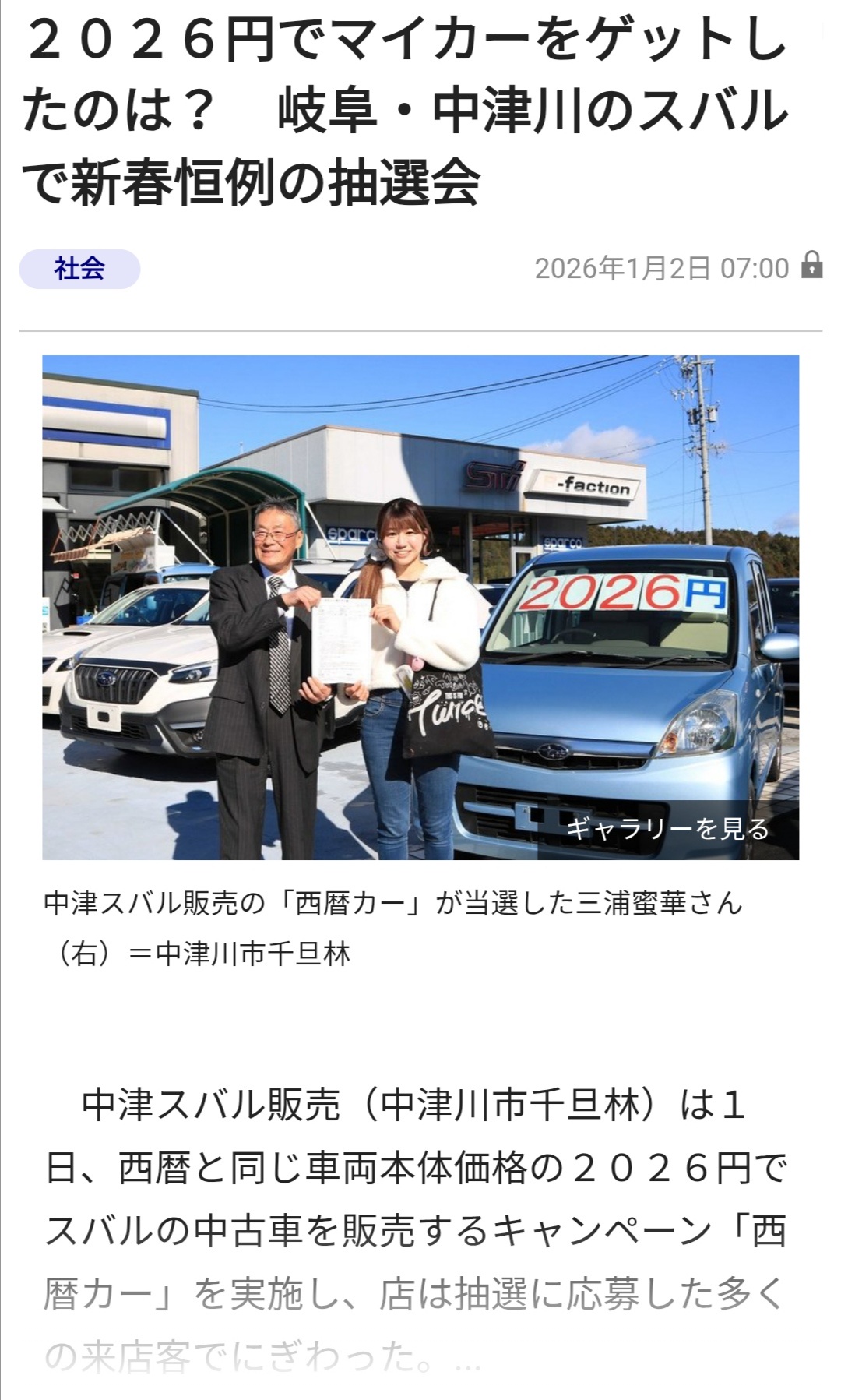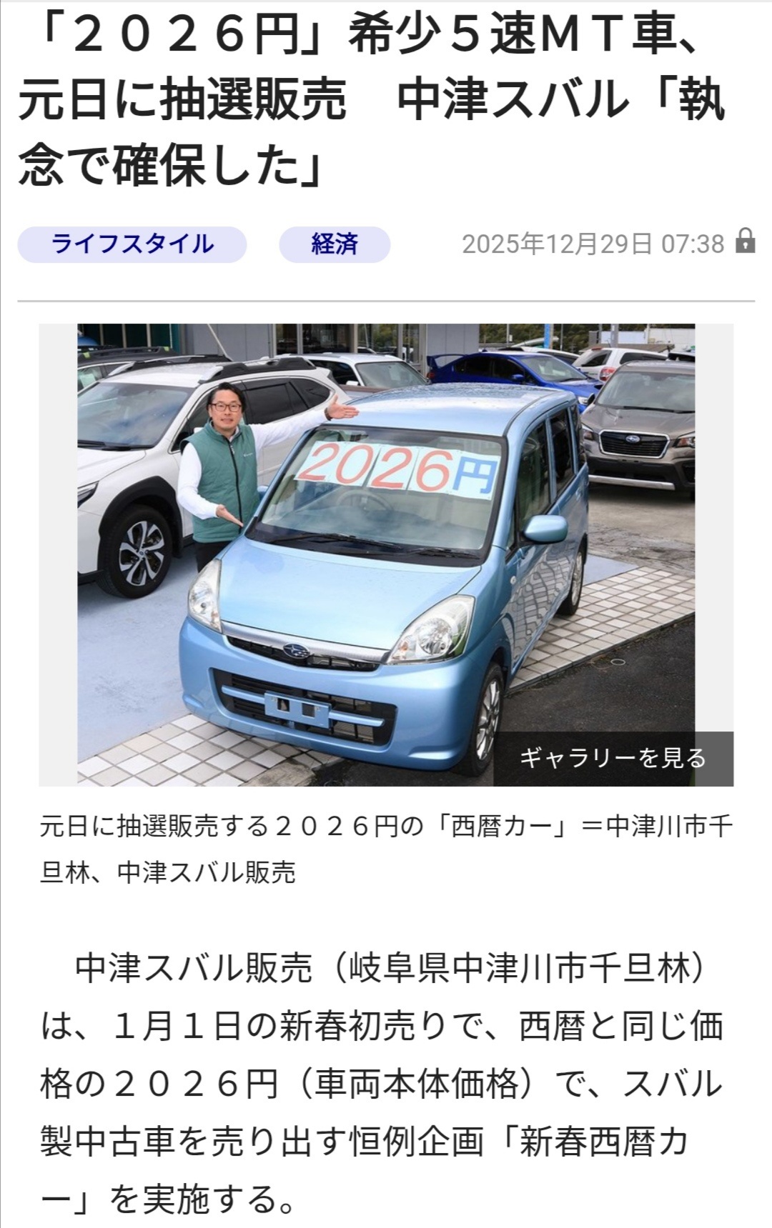 【朗報】まんさん、2026円の車をゲットwwwww (※画像あり) Twitter Facebook はてブ LINE コピー 2026.01.04 スポンサーリンク 1:それでも動く名無し:2026/01/03(土) 16:49:27.58 ID:970cIuOm0 2:それでも動く名無し:2026/01/03(土) 16:50:04.16 ID:NClALPoVr 納車式は? 3:それでも動く名無し:2026/01/03(土) 16:50:51.10 ID:HJs1j2vq0 手数料で15万円くらい取られそう 続きを読む
