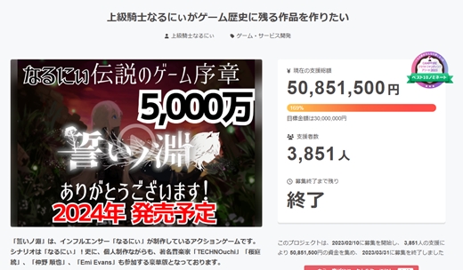 以前言及した、YouTuberがクラファンで5000万円集めてゲーム開発に挑戦した話、案の定だけど全く完成する見通しもなく、当の本人は今だにUnityをDLすらせずシナリオだけ書いて、主要メンバーが離脱してプロジェクトを開くことすらできず、残金が1000万円しかないから新たにパトロンとメンバーを募集す…