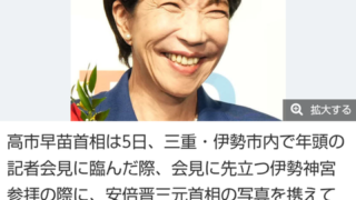 高市早苗首相は5日、三重・伊勢市内で年頭の記者会見に臨んだ際、会見に先立つ伊勢神宮参拝の際に、安倍晋三元首相の写真を携えていたことを明かした。