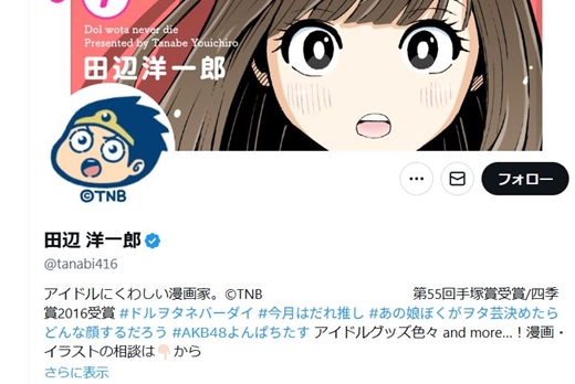 『AKB48』グループ関連の作品も描いていた漫画家・田辺洋一郎さん(50)が、xAI社が開発の対話型AIアシスタント『Grok(グロック)』を使い、アイドルの性的な写真をX(旧ツイッター)で公開したことで炎上騒動に発展し、謝罪コメントを発表しました。