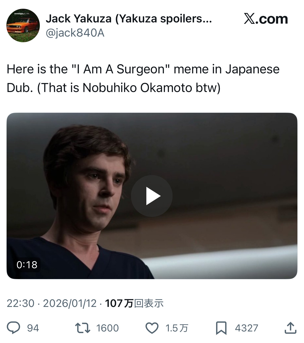 【動画】日本のアニメ声優、海外ドラマの自閉症役で笑い者にされるwwwwwwwwwwwwwwwwwwwwwww Twitter Facebook はてブ LINE コピー 2026.01.13 スポンサーリンク 1:それでも動く名無し:2026/01/13(火) 11:53:00.00 ID:Sq4tnVo60 https://video.twimg.com/amplify_video/2010703757030608896/vid/avc1/1280x720/q2ejYplCVkIMCtgI.mp4 ※見れない場合はこちら 2:それでも動く名無し:2026/01/13(火) 11:53:13.30 ID:Sq4tnVo60 続きを読む
