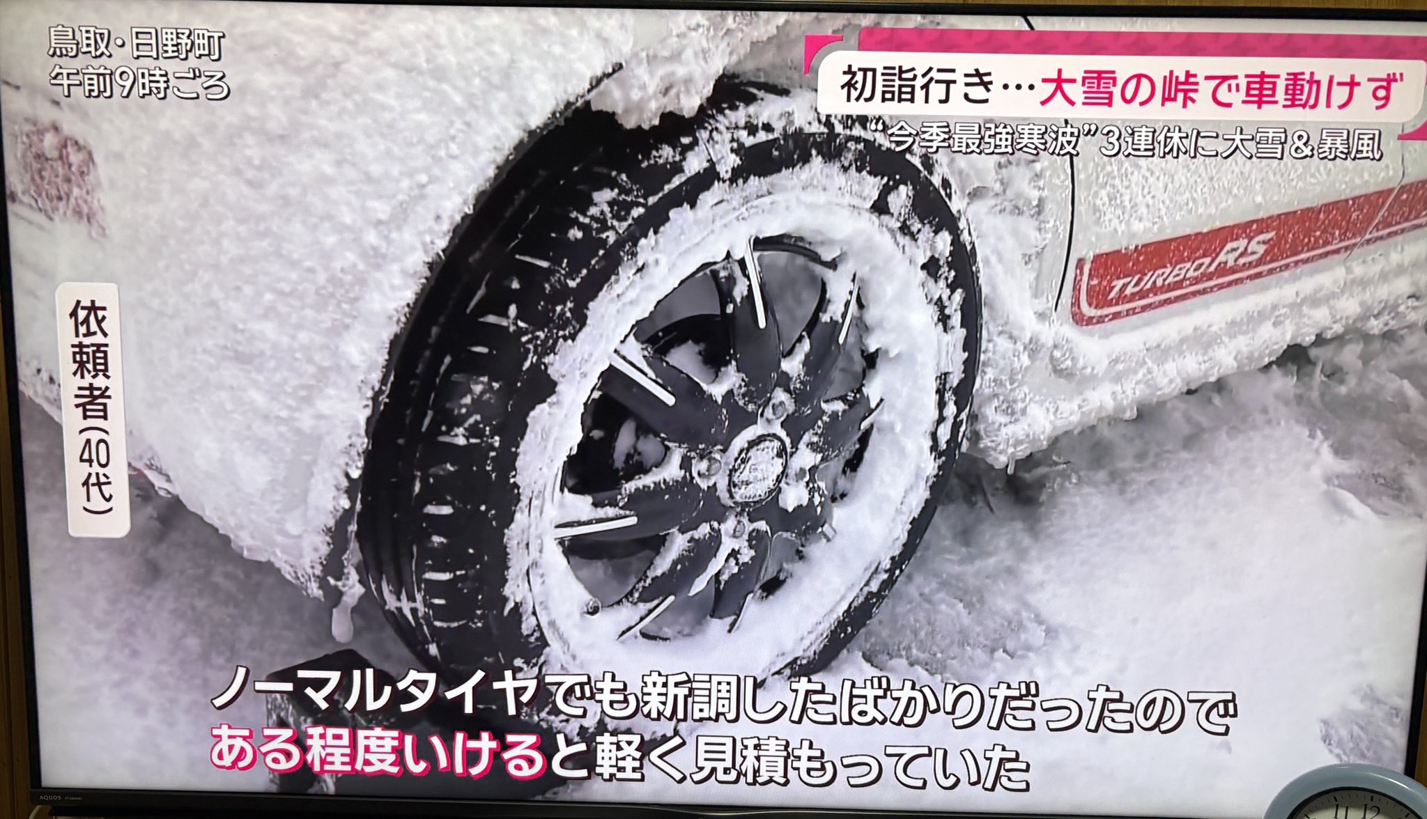 40代男性「新調したノーマルタイヤなら、雪道でも(ある程度)行けると思った。まさかここまで降っているとは、思わなかった。」