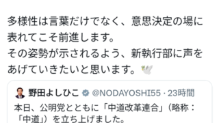 【正論】蓮舫「中道改革連合は多様性謳ってる割に女性が写ってなくない?」 Twitter Facebook はてブ LINE コピー 2026.01.18 スポンサーリンク 1:それでも動く名無し:2026/01/17(土) 18:33:49.35 ID:H2SnDidB0 2:それでも動く名無し:2026/01/17(土) 18:34:16.99 ID:pcJlNX9Cd 女に媚びる=多様性じゃないんだよなぁ 3:それでも動く名無し:2026/01/17(土) 18:34:49.37 ID:mmSRuzjq0 入れとけばいいみたいなのはもう古いよね 4:それでも動く名無し:2026/01/17(土) 18:34:50.79 ID:jz5s9M680 なにこいつ味方殴ってるん? 続きを読む