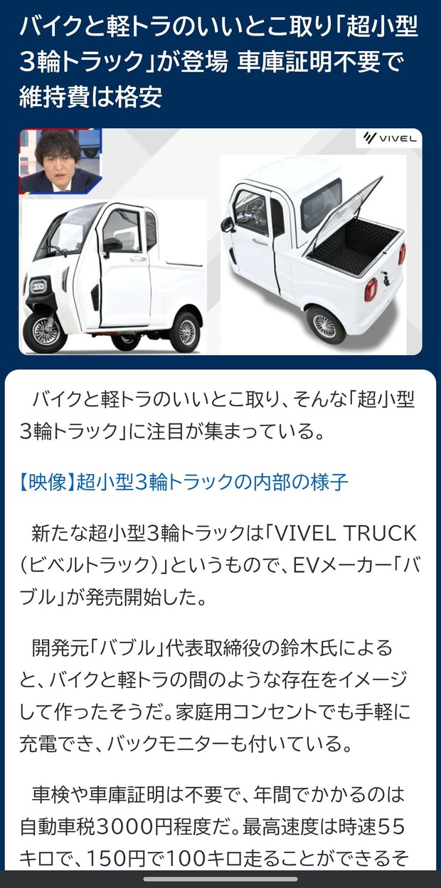 バイクと軽トラのいいとこ取り「超小型3輪トラック」が登場 車庫証明不要で維持費は格安