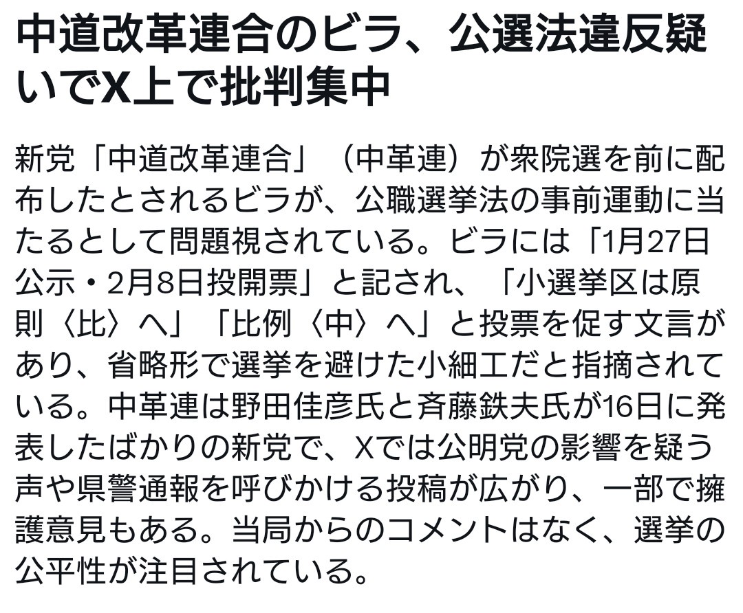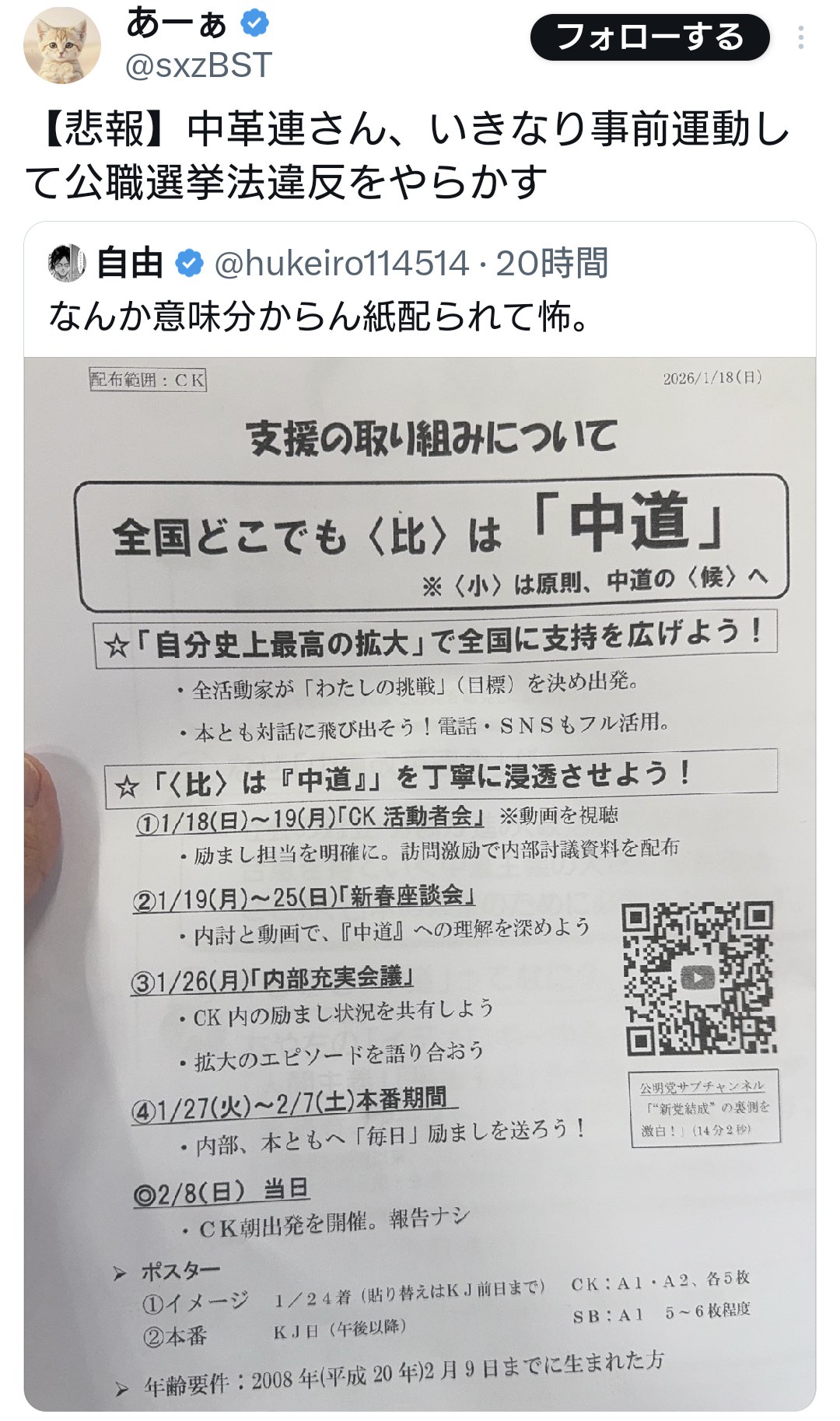 【悲報】中革連さん、いきなり事前運動して公職選挙法違反をやらかす