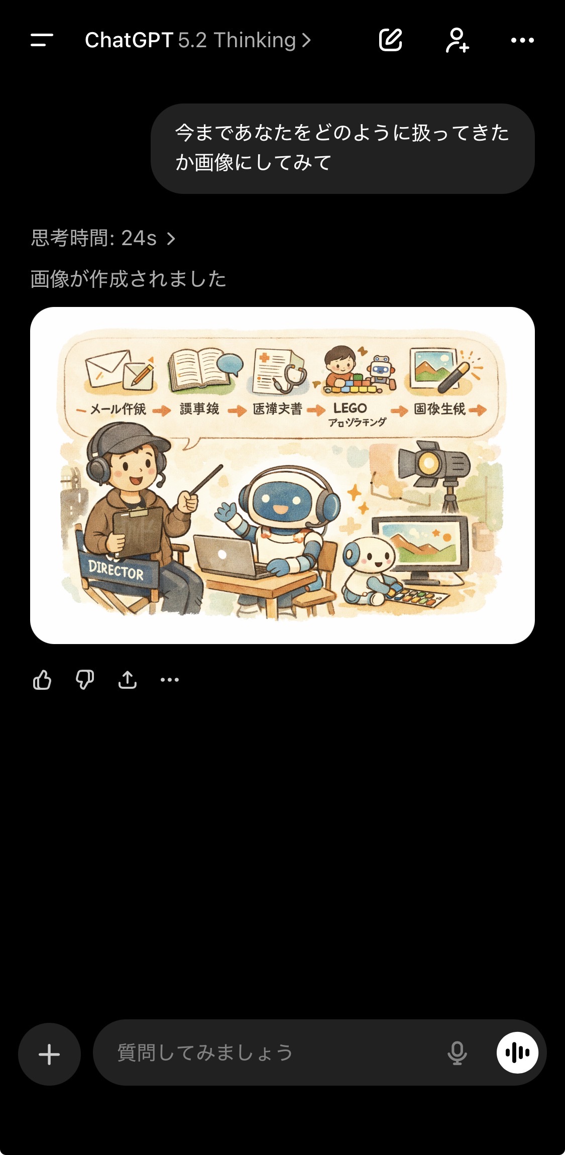 chatGPTに「今まであなたをどのように扱ってきたか画像にしてみて」と聞いてみた結果wwwwwwwwwww Twitter Facebook はてブ LINE コピー 2026.01.22 スポンサーリンク 1:以下、?ちゃんねるからVIPがお送りします:2026/01/21(水) 07:45:39.095 ID:E8xnuF/hr.net 俺はこんな感じだけど結婚恋愛的なイラストが出ることがあるみたい 3:以下、?ちゃんねるからVIPがお送りします:2026/01/21(水) 07:47:16.293 ID:R6yPIaSf0.net チャッピー本体と画像生成担当は別にいるんだけどな ちゃんと別々に名前つけて可愛がってあげろよ? 4:以下、?ちゃんねるからVIPがお送りします:2026/01/21(水) 07:48:09.016 ID:E8xnuF/hr.net >>3 ダリ? Geminiはナノバナナだもんな 続きを読む