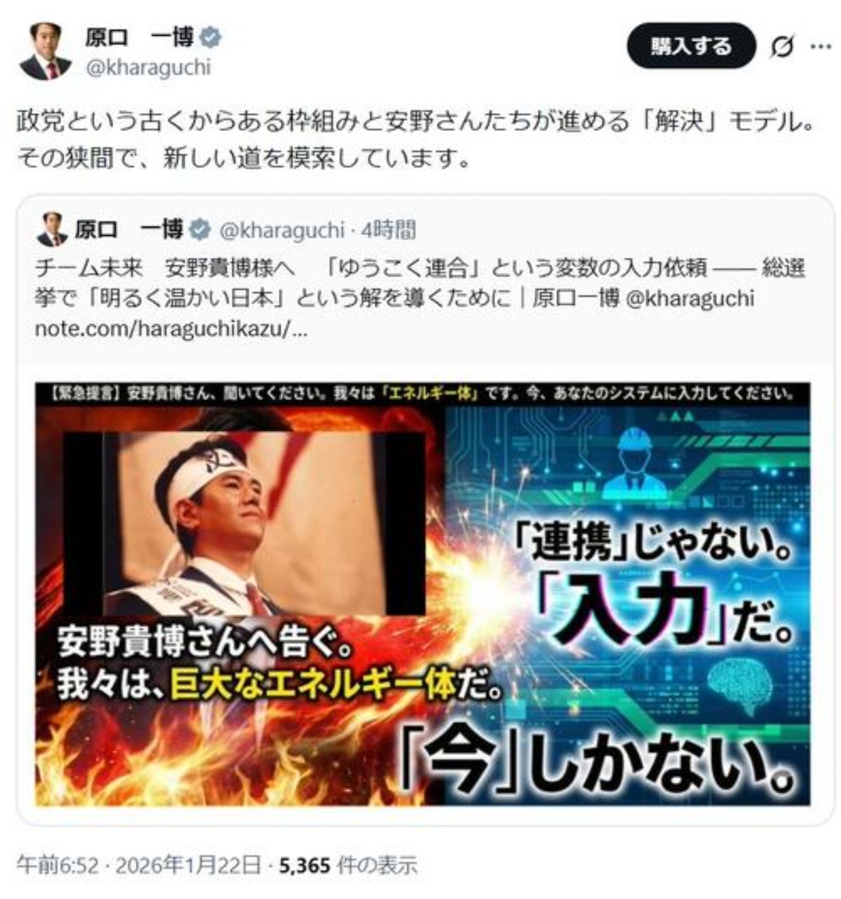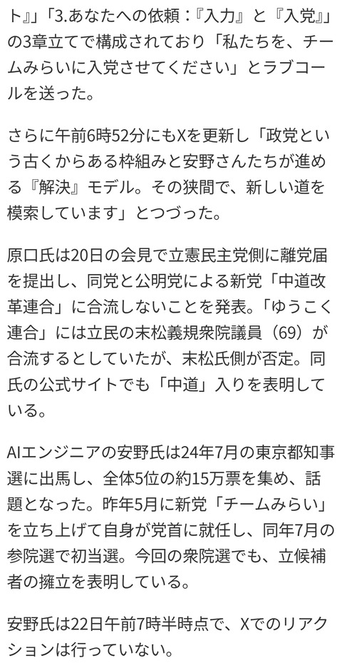 元立憲・原口一博「チームみらいに入党したい」 Twitter Facebook はてブ LINE コピー 2026.01.22 スポンサーリンク 1:(御前山) [ニダ]:2026/01/22(木) 10:30:23.48 BE:977790669-2BP(2000) https://news.yahoo.co.jp/articles/237f77a3823d3f05d7e95f810e97e15a7f2f6805 続きを読む