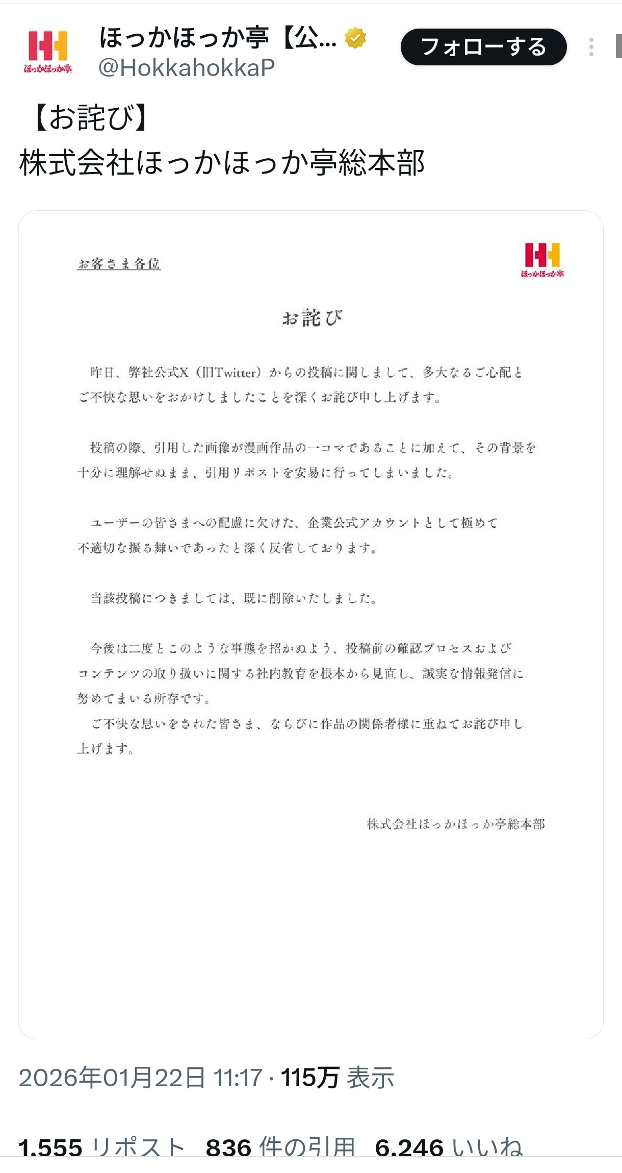 【画像】ほっかほか亭、謝罪wwwwwwwwwwwwwwwwwwwwwwwww