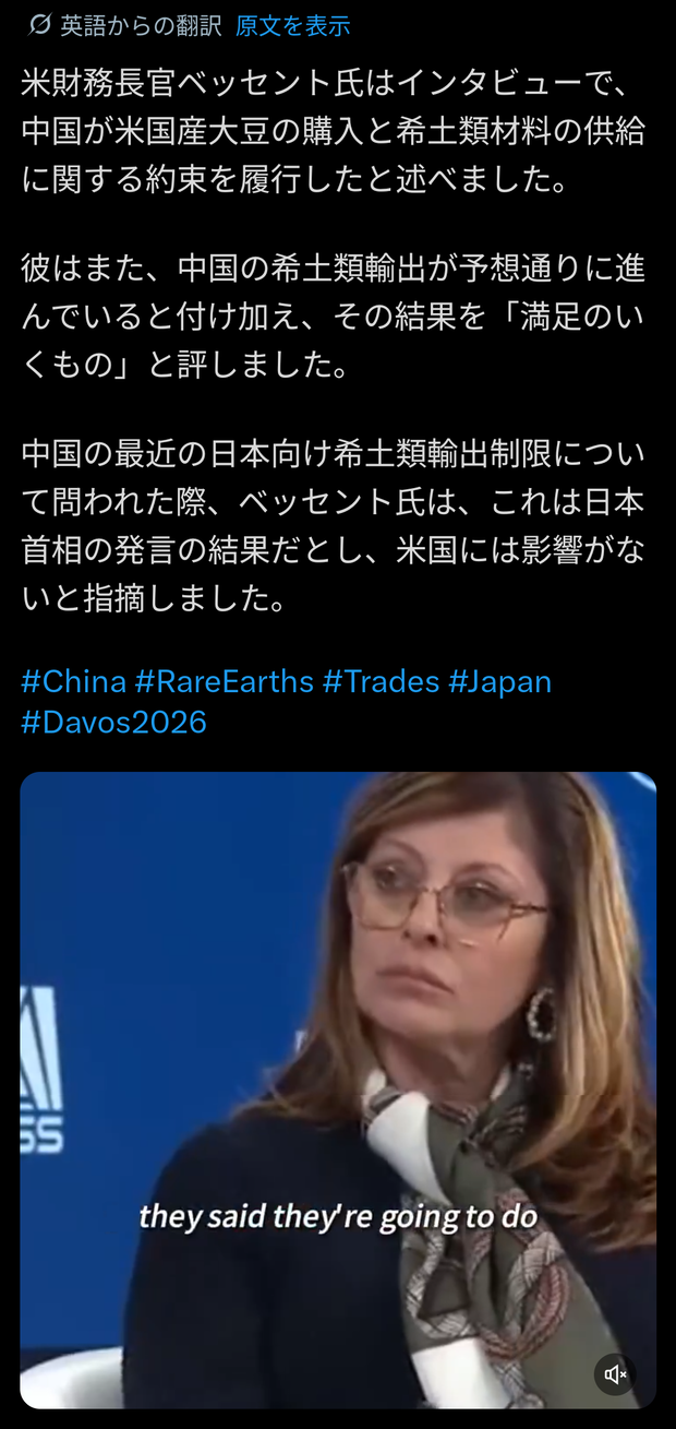 【悲報】アメリカ「中国のレアアース禁輸は高市の発言せい、うちには関係ない」 Twitter Facebook はてブ LINE コピー 2026.01.23 スポンサーリンク 1 : 以下、?ちゃんねるからVIPがお送りします :2026/01/23(金) 08:19:29.998 ID:l4vHDVVX0.nethttps://x.com/PhoenixTV_News/status/2014193909568794843転載元スレッド:https://viper.2ch.sc/test/read.cgi/news4vip/1769123969/ 続きを読む