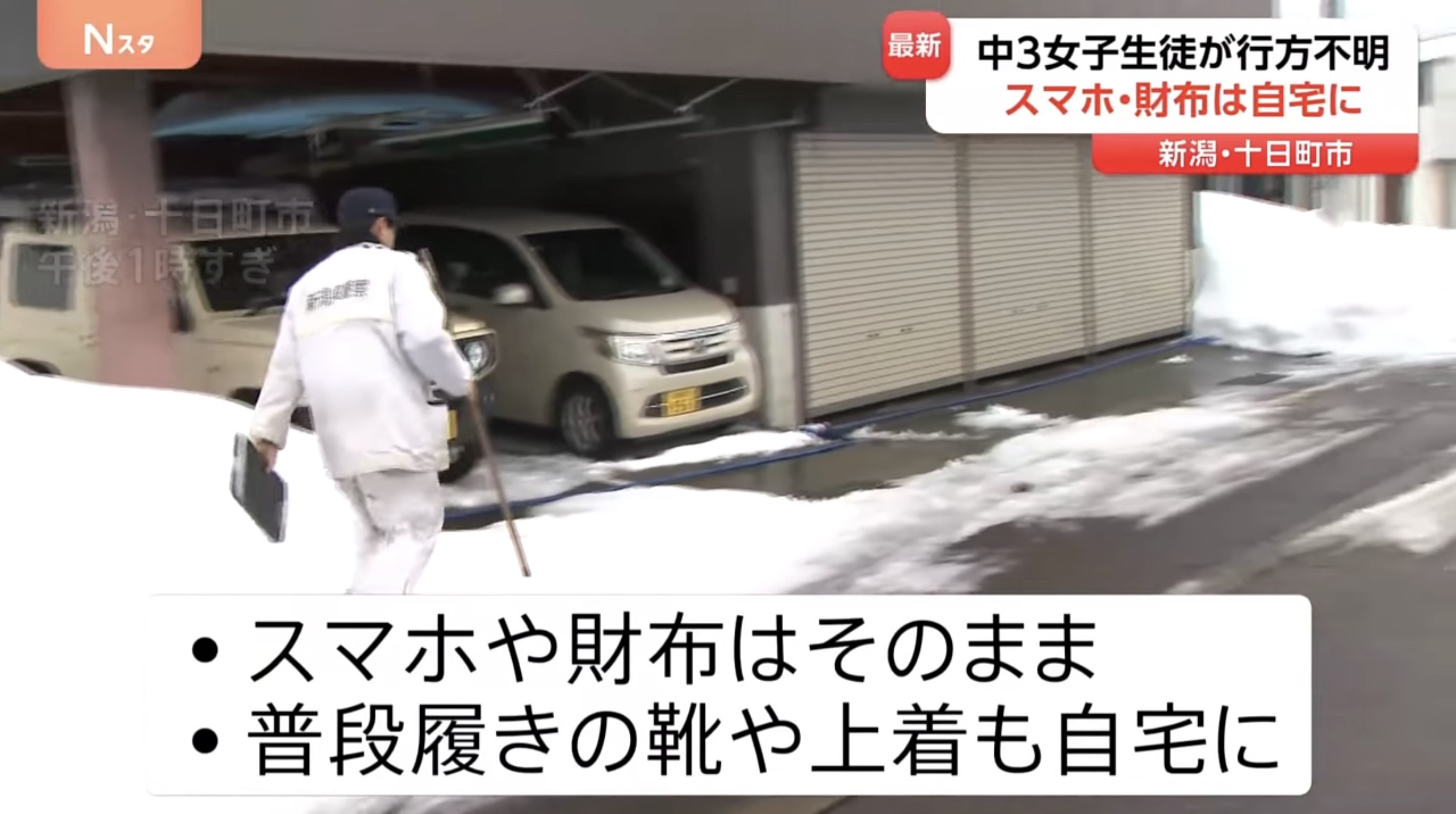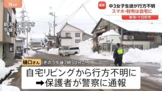 新潟県十日町市で中学3年の女子生徒(14)が行方不明。