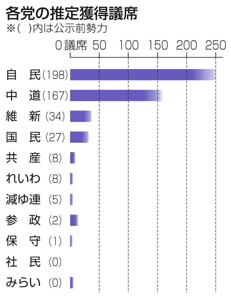 衆院選推定獲得議席(読売新聞)