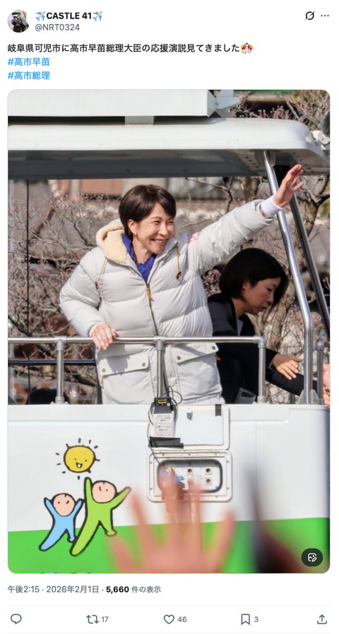 日曜討論をブッチした高市、岐阜県可児市で発見される(※画像あり) Twitter Facebook はてブ LINE コピー 2026.02.01 スポンサーリンク 1:それでも動く名無し:2026/02/01(日) 15:12:24.56 ID:VDnWKRUM0 2:それでも動く名無し:2026/02/01(日) 15:13:27.24 ID:6tSJRA4u0 今更オールドメディアに出演する意味ないしな 3:それでも動く名無し:2026/02/01(日) 15:14:38.20 ID:VDnWKRUM0 >>2 天敵大石から逃げたらしいな 続きを読む