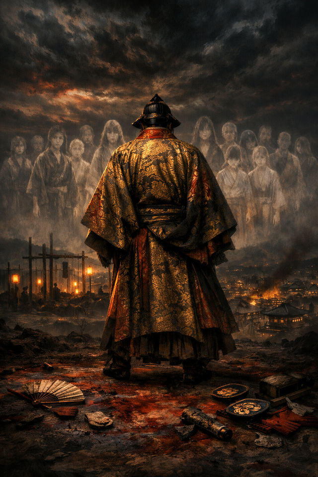 39人の中には13歳の側室など女性が中心で幼児、姫君もいて容赦なく串刺し、首を飛ばしていった