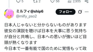 彼女の演説を聴けば日本を大事に思う気持ちが自分と共鳴し、日本への思いが強いほど目頭が熱くなります