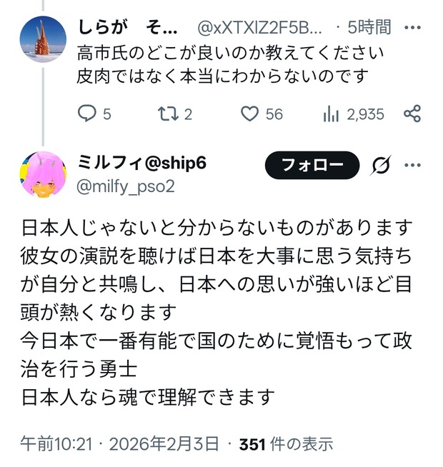 — ミルフィ@ship6 (@milfy_pso2) February 3, 2026