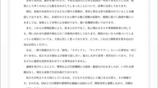 どうか、子どもたちの未来と尊厳を守るためにも、誹謗中傷や個人が特定される行為はお控えいただきますよう、皆さまのご理解とご配慮を心よりお願い申し上げます。