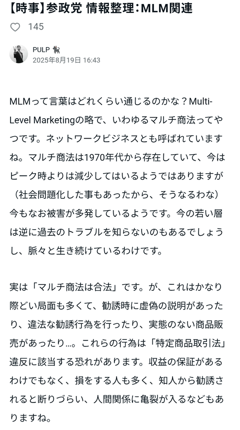 【時事】参政党 情報整理:MLM関連|PULP