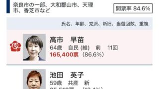 【画像】早苗の得票数、レベチwwwwwwwwwwwwwwwwwwwwwwww Twitter Facebook はてブ LINE コピー 2026.02.09 スポンサーリンク 1:それでも動く名無し:2026/02/09(月) 15:01:13.19 ID:ExsNOCCw0 4:それでも動く名無し:2026/02/09(月) 15:07:24.02 ID:/NXxzsdN0 反自民反サナだけで無名の人に25000票はいるのは素直にすごい 6:それでも動く名無し:2026/02/09(月) 15:09:07.54 ID:cauewBPi0 >>4 こんだけ大人気大人気言うとるんやから最低でも95%は超えとらんといかんわな 8:それでも動く名無し:2026/02/09(月) 15:10:55.83 ID:cuSxphOx0 >>6 キチガイは一定数いるんや 続きを読む
