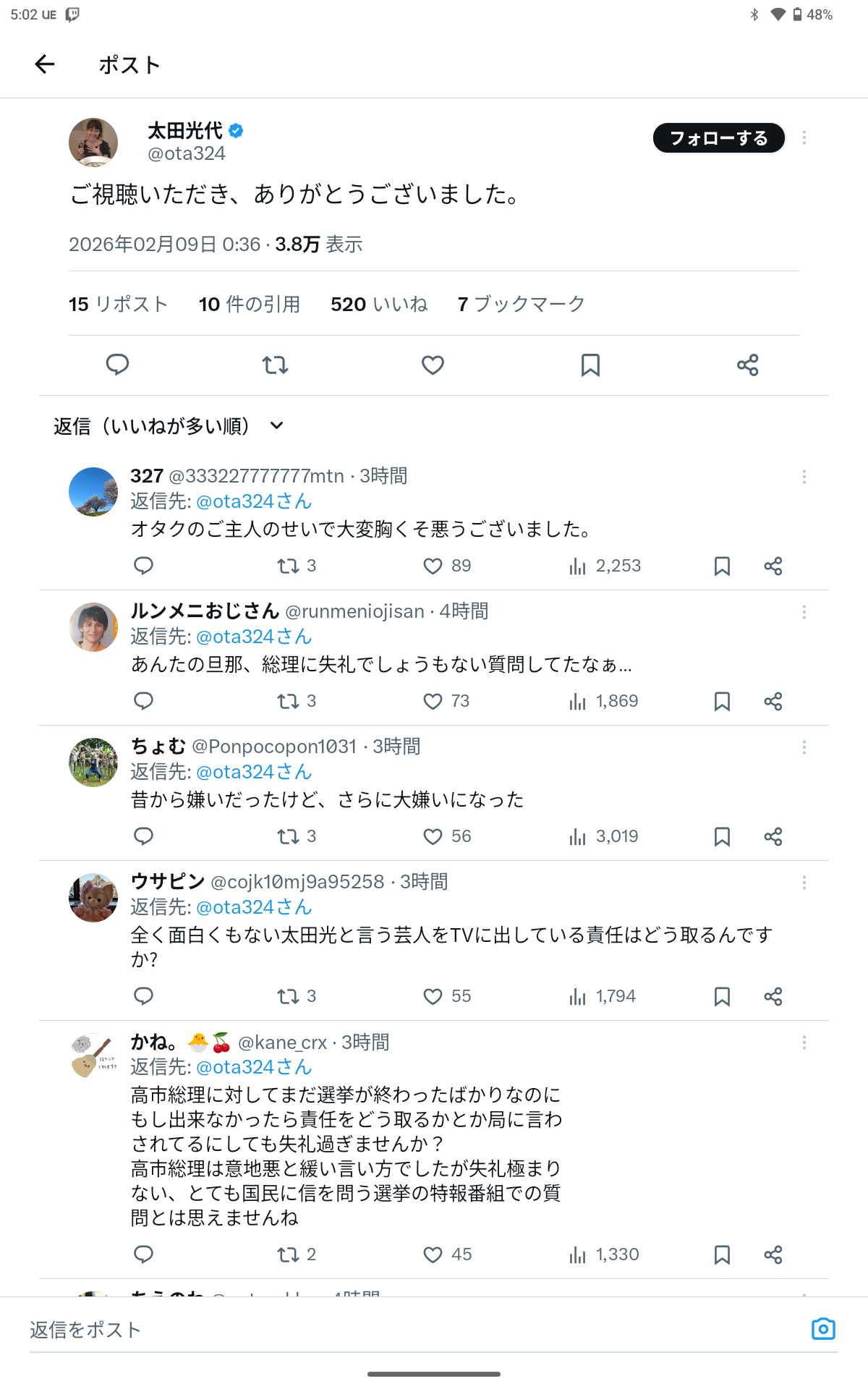 愛国者さん、太田光にブチギレて逮捕を要求wwwwwwwwwwwwwwww