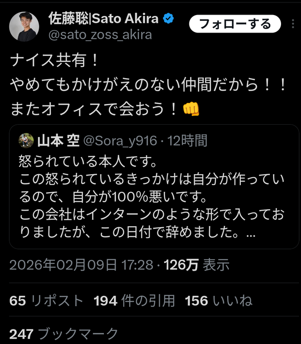 — 佐藤聡|Sato Akira (@sato_zoss_akira) February 9, 2026