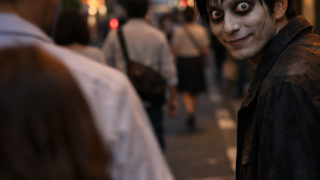 深夜にニッコニコで独り言いってるヤバい奴が後ろから迫ってきたとき心臓飛び出そうやったわ
