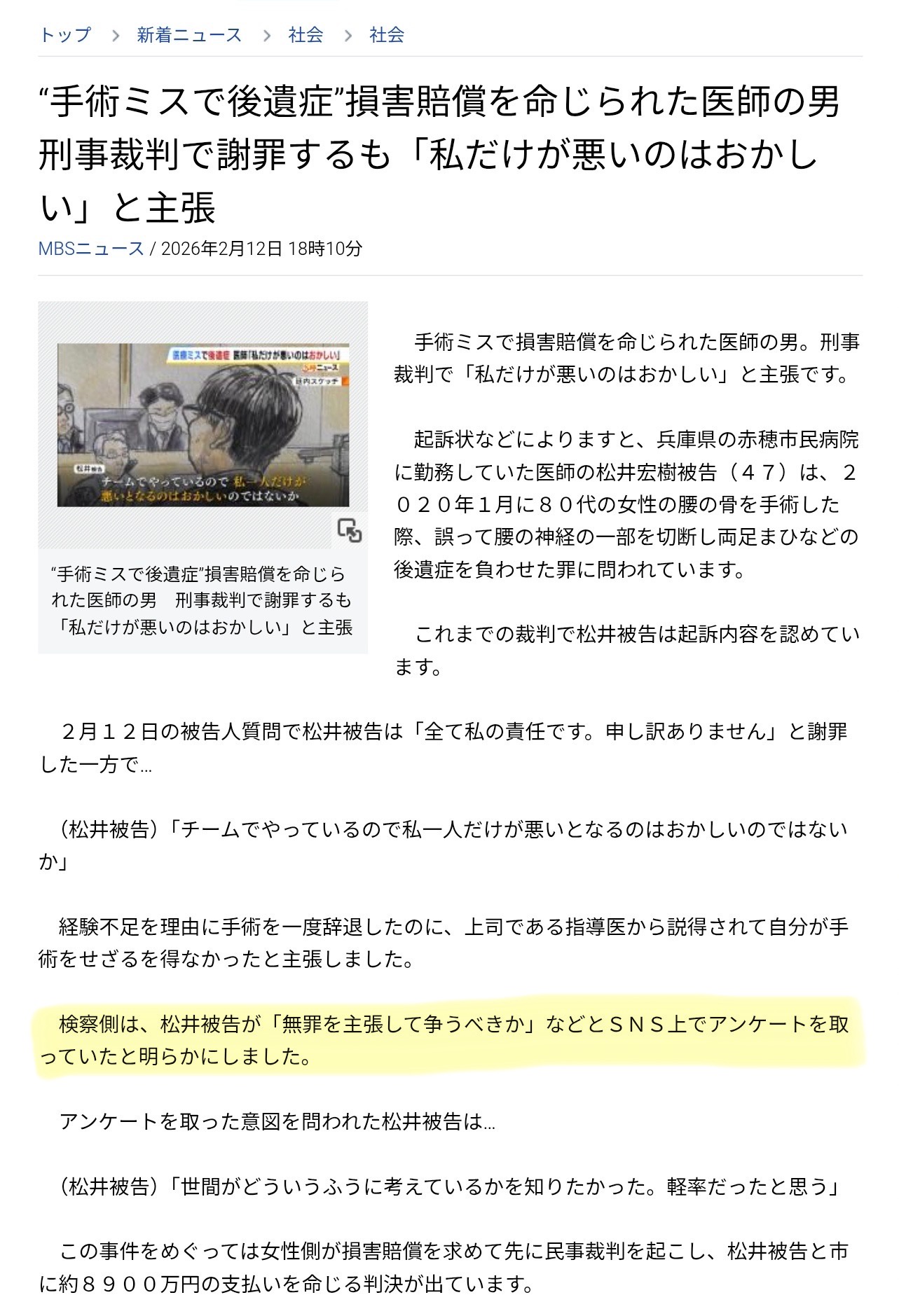 【主張】"手術ミスで後遺症"医師の男、謝罪の一方「私だけ悪いのはおかしい」https://t.co/zotRWUYe2Z